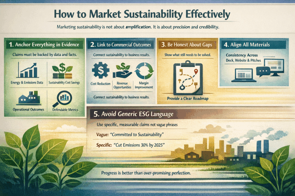Most issues seen in investor and procurement processes are not driven by lack of activity, but by how that activity is presented. Sustainability is often overstated or disconnected from the commercial model. In both cases, it reduces credibility. The objective is not amplification. It is precision.